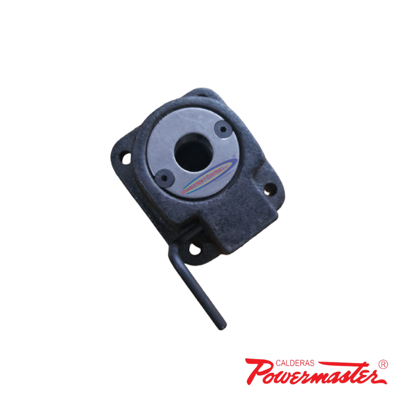 Es un soporte o base de montaje que permite instalar la mirilla o visor de vidrio en la caldera, especialmente en la tapa trasera del equipo, asegurando estabilidad, alineación y sellado seguro.